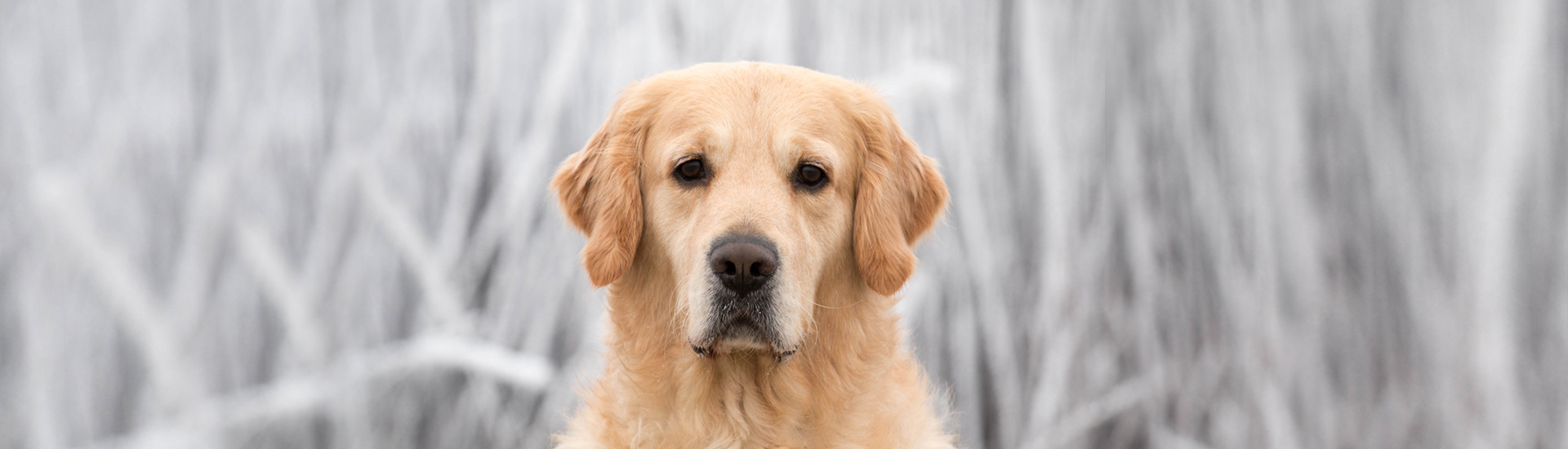 Bei Golden Retrievern kann man stehen oder sich seitlich neben dem Hund knien und den Kopf sowie die Rute in der korrekten Position halten.